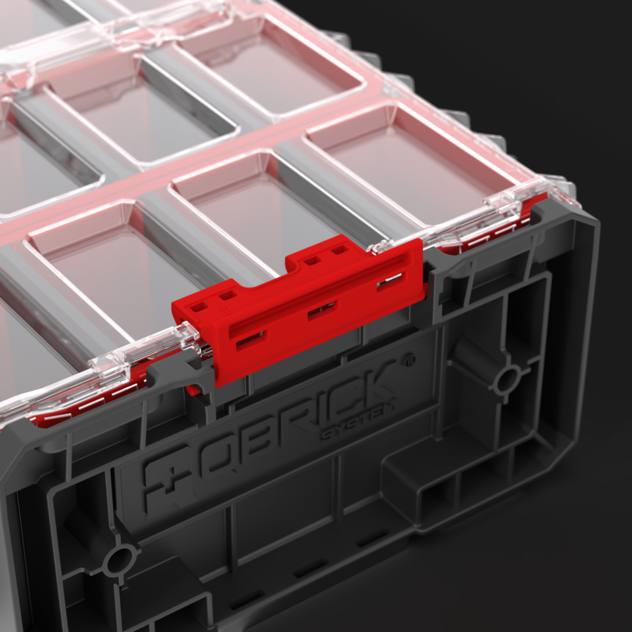 Im Rahmen der Premiere dieses Organizer-Modells werden QS ONE Connect Adapter (2 Stk.) in den Innenraum integriert, die eine stabile und sichere Montage von XL- und 2XL-Organizern sowie allen anderen Boxen der ONE-Linie in vertikaler Position (Werkstattwände, Bus) mit einer maximalen Traglast von 15 kg oder in horizontaler Position (Werkstattboden/Regal, Bus) mit einer maximalen Traglast von 50 kg ermöglichen.